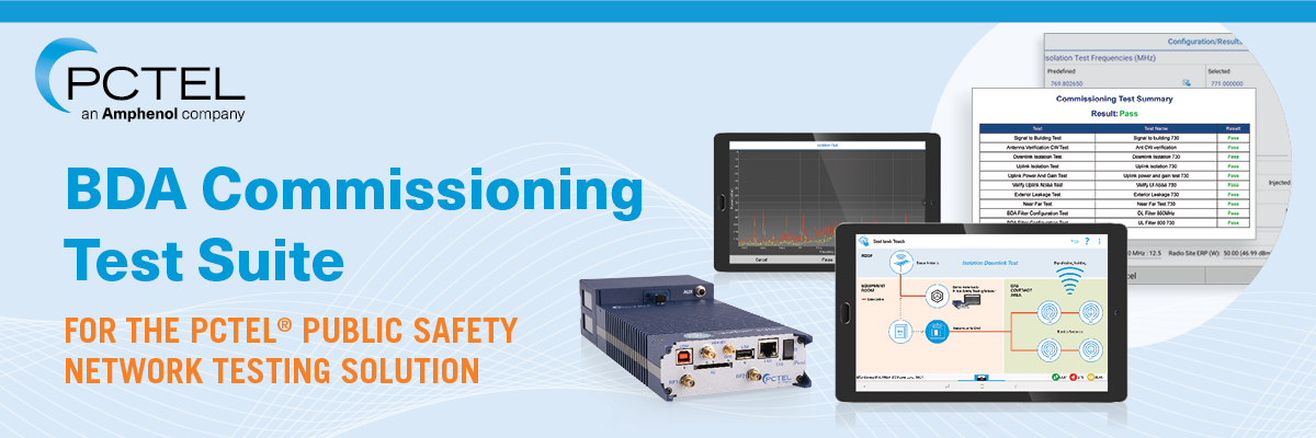We are excited to announce a major upgrade available for the PCTEL® Public Safety Network Testing Solution. Our innovative BDA Commissioning Test Suite now supports automated testing, grading, and reporting for all industry standard RF-based BDA commissioning tests.