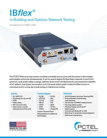 It can be used to deploy 5G New Radio networks in sub-6 GHz spectrum, verify public safety coverage, optimize dense small cell deployments, and improve the reliability of IoT systems. Low power consumption and a hot-swap battery system make the IBflex scanner a convenient tool for a long day of walk testing or interference hunting.