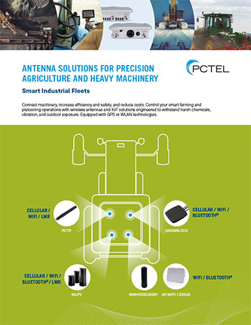 Connect machinery, increase efficiency and safety, and reduce costs. Control your smart farming and platooning operations with wireless antennas and IIoT solutions engineered to withstand harsh chemicals, vibration, and outdoor exposure. Equipped with GPS / GNSS or WLAN technologies.