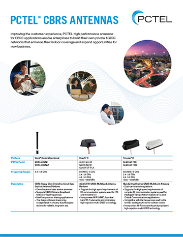 Improving the customer experience, PCTEL high performance antennas for CBRS applications enable enterprises to build their own private 4G/5G networks that enhance their indoor coverage and expand opportunities for new business.