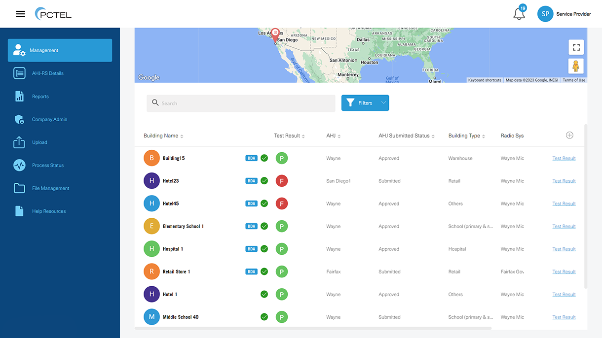 SeeHawk Central is a cloud-based workflow management platform for testing, approving, and tracking in-building critical communications coverage and Emergency Responder Communication Enhancement Systems (ERCES) such as bi-directional amplifiers (BDAs). It makes testing with PCTEL solutions even more efficient, improves collaboration between testing services and public safety agencies, and provides an easy-to-use secure database of building, BDA, and radio site information.